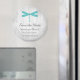 Imã salve a data elegante e simples apresentando uma libélula teal contra um fundo de cinza. Esta design é uma escolha única para anunciar um casamento moderno. Fácil de personalizar com seus detalhes de casamento. Clique em "Personalizar" para encontrar mais opções de personalização.
