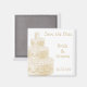 Imã salve o dia com um bolo de casamento branco. Personalize com suas próprias informações no espaço fornecido. Também disponível em cartões postais e selos.