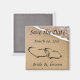 Imã salve o dia de Casamento de Praia, com dois corações desenhados na areia. Insira suas informações em nosso modelo fácil de usar.