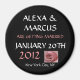 Íman redondo - casamento salve o ímã de data. Esta design é com fundo preto, mas você pode mudar a cor de fundo para se adequar ao seu gosto pessoal. Personalize com suas informações.