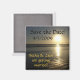Magneta com vista ao pôr do sol na praia. Pode ser usado para várias coisas, inclusive para salvar a data do casamento.