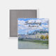 Foto da cidade de Salzburgo, na Áustria, com o seu rio e o seu castelo Festung Hohensalzburg.