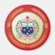 O selo nacional ou o casaco de armas de Samoa é colocado sobre um fundo vermelho. O emblema é infundido numa forma falsa de círculo dourado, e que, por sua vez, está aninhado no meio de uma coroa falsa de ouro laurel.