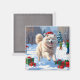 Imã Samoyed Correndo em Neve com Chapéu de Natal