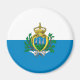 O Estado e a bandeira da guerra de São Marinho são formados por duas bandas horizontais iguais de branco (alto) e azul-claro com a casaco nacional de armas sobreposta no centro; a casaco de armas tem um escudo (com três torres em três picos) com uma coroa fechada sobre cima, flanqueada por um carvalho e uma coroa de louros, com um pergaminho abaixo da palavra LIBERTAS (Liberdade). As duas cores da bandeira representam paz (branco) e liberdade (azure).