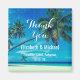 Um obrigado de casamento, seu imã comemorativo. Projetado com uma foto tropical apresentando palmas de coco que se estendem através de uma praia elegante branca isolada. Águas turquesas e um céu azul azul de azure no fundo. Adicione facilmente o seu nome, local do casamento e data.