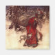 Magnet com a ilustração de Arthur Rackham sobre o Pai Natal (1907). Um Papai Noel de leito vermelho carregar um saco de presentes de Natal em uma madeira de neve. Elves voam ao seu lado. Um presente alegre para o Natal!