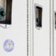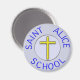 O design atualizado de Patch da Escola Alice Blue/cinza e Santo de ouro em um ímã redondo. Excelente para o seu frigorífico ou qualquer conselho de boletins magnéticos ou conselho branco.