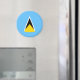 A bandeira do Santo Lúcia foi cuidadosamente adaptada à forma circular deste ímã. Uma maneira decorativa de promover a cultura Lúciana Santo.