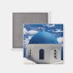 Magnet com Santorini, foto de Grécia com céu azul e nuvens brancas.