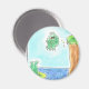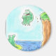 Cartoon de um sapo fazendo uma bola de canhão em um lago