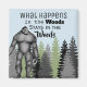 Um excelente de ímã engraçado para sua casa, camper ou cabine. Uma floresta com um Sasquatch e a mensagem, "O que acontece na floresta... fica na floresta"