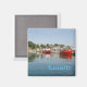 Foto de Sassnitz Harbor em Ruegen, em Mecklenburg, Vorpommern, na Alemanha, que aparece neste ímã de souvenir. O texto é personalizável ou removível. Os ímãs fazem um presente ideal, ou um presente pessoal para ficar no seu frigorífico ou no armário. Este ímã quadrado é de 2" x 2" (5 cm x 5 cm) ou você pode escolher entre um ímã redondo em diferentes tamanhos.