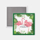 Saudações de Orlando, Florida. Design colorida com flamingos rosados e folhas verdes tropicais.
