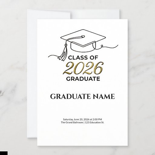 Incluye campos de texto personalizables para el nombre del graduado, fecha y lugar del evento.