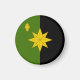 "Per pale vert and sable, uma estrela de bússola e em cantão uma folha de carvalho ou."