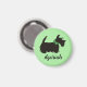 Magnet, um cão escocês personalizado, em arco verde sobre fundo verde. Pode ser personalizado com nomes, sobrenome ou ditado. Um presente perfeito para você ou seu amante escocês favorito.