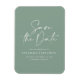 Um roteiro casual sage no casamento da tipografia verde salve o anúncio da data.