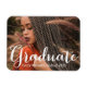 Anuncie seu graduado com estilo com este ímã de anúncio de graduação de foto simples e moderno que apresenta uma foto do graduado com sobreposição de script branco manuscrito rústico "graduado" e texto personalizado que pode ser personalizado para o nome e ano de turma do graduado.