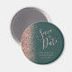 A borda esquerda desta Imã salve a data elegante apresenta uma borda brilhante de faux dourado rosa. O texto personalizável combina o script de escrita manual rosa-rosa com a letra serif num fundo verde escuro.