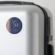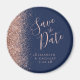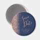 A borda esquerda desta Imã salve a data elegante apresenta uma borda brilhante de faux dourado rosa. O texto personalizável combina o script de escrita manual cor-de-rosa rosa com a letra serif num fundo azul marinho.