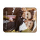 Esses ímãs personalizados de fotos fazem presentes únicos para qualquer um. Este modelo de design apresenta uma foto para você mudar para a sua. Personalize com nomes em um moderno roteiro branco com letras. Desenhada por Susan Coffey.