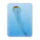 Uma pintura aquosa de uma água-viva, com um topo colorido, no oceano grande, aberto, azul. Copyright ©2017 Kimberly J Tilley.