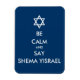 Uma paródia do popular tema "BE CALM AND CARREGAR ON". Uma Estrela de David (Magen David) substitui a coroa familiar acompanhada por texto lendo "BE CALM AND SAY SHEMA YISRAEL", referindo-se à oração de Shema que começa, "Shema Yisrael Adonai eloheinu Adonai ehad (Ouvir O Israel, o Senhor é nosso Deus, o Senhor é Um). Esta é a declaração do judaísmo e a afirmação da crença em um Deus.