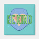 "Seja gentil" contra um crachá/adesivo azul com um coração avermelhado. A bondade importa.