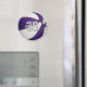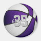 Este ímã legal do tema basquetebol apresenta a imagem de uma bola de basquete realista com painéis coloridos roxos e brancos alternados - facilmente personalizados com o nome do atleta & número de jersey - por katz_d_zynes