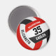 Este ímã temático de vôlei com cores personalizadas apresenta a imagem realista de um vôlei com painéis vermelhos, pretos e brancos sobre os quais você pode personalizar o nome do jogador & jersey number mais nome de escola ou clube e nome de mascote em uma letra estilo varsity - por katz_d_zynes