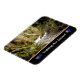 Imãs de geladeira (Flags): A selva florestal típica da Nova Zelândia com musgo distinto em árvores, caminho rochoso desaparecendo atrás de rochas gigantes e pedaços de neve cobrindo esta paisagem fada como uma fada. Cheio florestal mágico de árvores de Fern com folhas desdobráveis, matas espessas e árvores gigantes na vegetação mista. Série viagem - Linda Nova Zelândia, Ilha do Norte. Fotografia original/Arte/Design por trabalho4Sonho.
