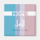 Celebre a mensagem universal da esperança com esta inspiradora design. Apresentando a palavra 'ESPERANÇA' ousadamente exibida em Inglês e Árabe (ا ل أ ل), a trabalho de arte faz a cultura através da sua mensagem alarmante. Partindo de um fundo moderno, de blocos coloridos, de blues calmantes e pinks macios, dividido por um bar branco marcante, a composição é contemporânea e significativa. A frase "SEMPRE TENHO ESPERANÇA" acrescenta um toque extra de encorajamento, fazer-o perfeito para quem procura inspiração. Ideal para arte em parede, cartas ou mercadorias, este design fala de resiliência e otimismo em qualquer língua.