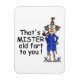 Atitude humorística de aniversário T-shirts, botões, canecas, ímanes, chaveiros, cartões, autocolantes e outros roupas de aniversário que incluem Gus com um chapéu de aniversário vestido com o seu roupão e pantufas dizendo "É um peido velho MISTER para ti!".
