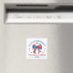 Senhora Presidente, Kamala Harris, imã 2024, Swag eleitoral com arco vermelho, branco e azul, e estrelas.