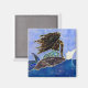 Adicione um pop à geladeira ou reparem no conselho! Magneta quadrada ou redonda impressa com minha ilustração original "Senhora do Atlântico Cruzando", mostrando uma sereia com escalas azuis e verdes assentando em uma rocha e olhando para fora do oceano. O vento está soprando o cabelo dela e batendo algumas ondas. A ilustração original foi feita em esmalte vítreo de cloisonte, que envolve fusão de vidro colorido e fio prateado a uma base metálica a temperaturas próximas a 1400F.