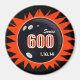 Boliche série 600 em boliches de liga ou torneio. Criado com uma bola de boliche preta e gráficos de fundo vermelhos brilhantes. Design de boliche única totalmente personalizável. Altere a data em bolso, a fonte, a cor e o local.