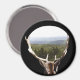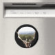 Uma pintura digital da cabeça de Buck com vista a árvores cobertas de colinas e montanhas entre suas galhadas. Esta imagem não tem fundo, você pode escolher uma cor de fundo diferente.