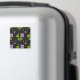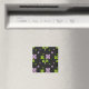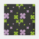 Padrão floral uniforme original, shamrocks verdes e roxos de sorte em fundo preto.