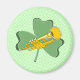 Um trompete contra a imagem de uma shamrock é um design de presente irlandês único para músicos de latão, professores de música e estudantes em concertos, jazz e bandas de marche na Rua. Dia de Patrick.