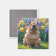 Um cão alegre senta-se pacificamente sobre a relva verde-luxuosa, rodeado por primavera coloridas floridas sob um céu azul macio. Esta pintura digital de óleo captura um momento sereno com pinceladas expressivas, cores quentes e um senso de alegria gentil.