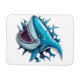 Shark's Mouth: The most striking feature is the open mouth filled with rows of sharp teeth. The teeth are depicted in white against the darker purple interior of the mouth, creating a stark contrast that emphasizes the aggressive nature often associated with sharks.