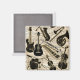 Esta design de música divertida apresenta uma variedade de instrumentos musicais em uma fita musical, fundo de colagem. A paleta de cores preto e dourado da tendência faz uma imã de geladeira atraente. Os instrumentos apresentados são: guitarra acústica e elétrica, saxofone, clarinete, trombone, trompete, trompa francesa, flauta, violino, violoncelo e tambores. Adicione seu nome ou outro texto para personalizar. Procure ID481 para ver outras opções de cores e produtos com este padrão.