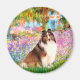 O Jardim de Giverney, de Claude Monet, adaptado para incluir um Shetland Sheepdog, era, na verdade, o Jardim de Monet, cheio de flores brilhantemente coloridas.