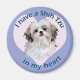 O amante Shih Tzu apreciará esta design. Um coração encerra um cão Shih Tzu ao estilo de desenho animado cercado pelo texto "Eu tenho um Shih Tzu em meu coração". Quer isso no estilo masculino em vez de uma mulher ou de uma camisola em vez de uma camisola? Procure o link Selecionar um estilo de camisa diferente a ser escolhido. Procure botões Shih Tzu, canecas, mousepads e outros itens.