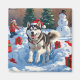 Imã Siberian Husky Correndo em Neve com Chapéu de Nata