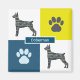 Padrão abstrato das linhas de grade amarela, azul e preta do Doberman Pinscher. As impressões da pata alternando com a silhueta do cão fazem um padrão legal. Você pode personalizar com seu nome de cachorro ou simplesmente deixar a raça.