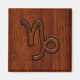 Um símbolo Capricórnio zodiac em fundo impressão de madeira marrom mogno. Um design moderno urbano para uma ideia personalizada de presente de aniversário de excelente. Use o link "Perguntar a este Designer" para entrar em contato conosco com suas solicitações especiais de design ou para obter assistência com seu projeto de personalização.