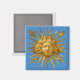 Símbolo de Luís XIV o Rei Sol (Roi Soleil) no portão ouro de Chateau de Versailles com fundo azul-céu