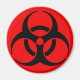 Símbolo de risco biológico preto em uma cor vermelha neon.